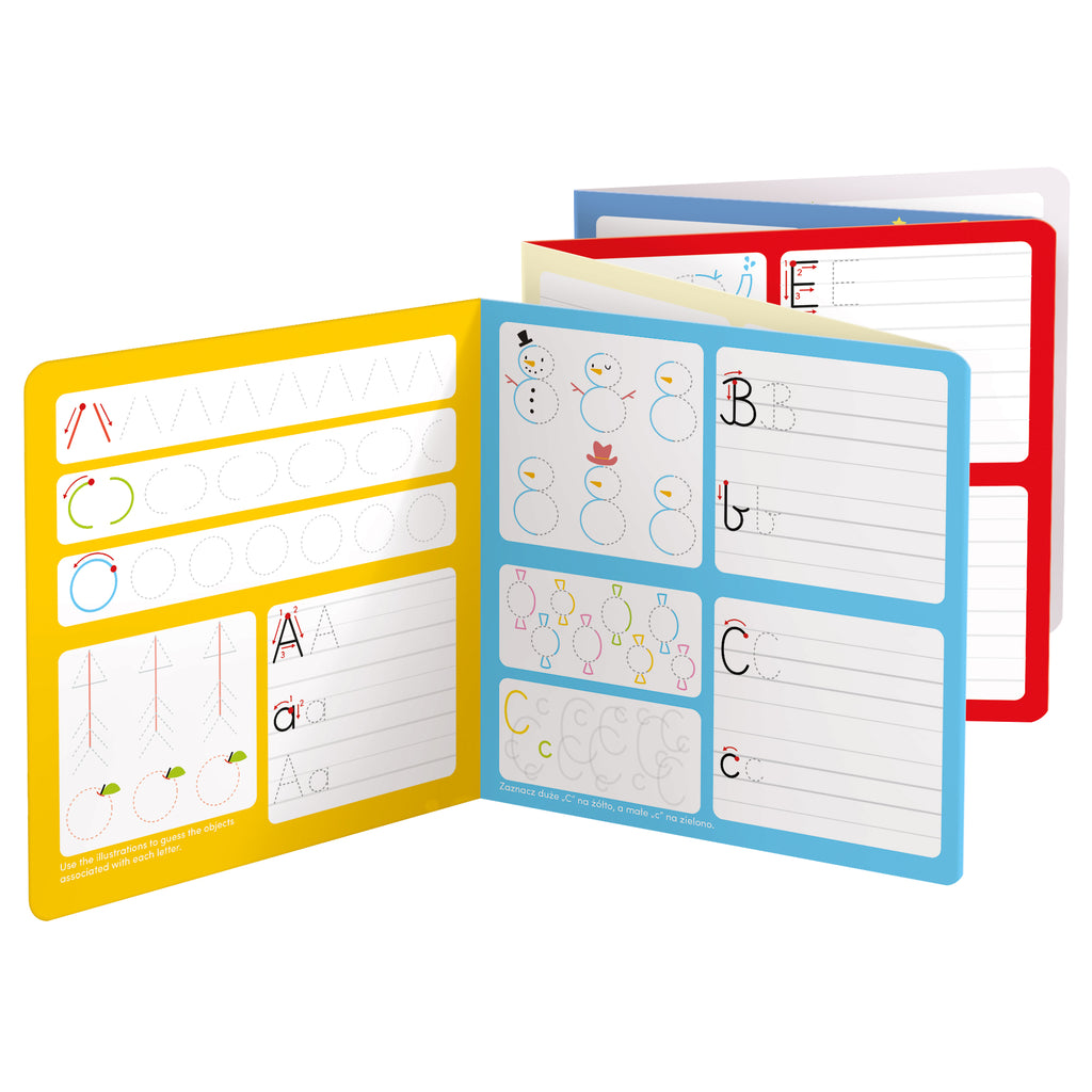 Pencils and crayons are ready – it’s time for some creative exercises and adventures with writing letters! This creative set includes 2 long (37.5”!) accordion books filled with creative exercises. These fun activities inspire children to practice precise hand movements and provide an introduction to learning to read and write.