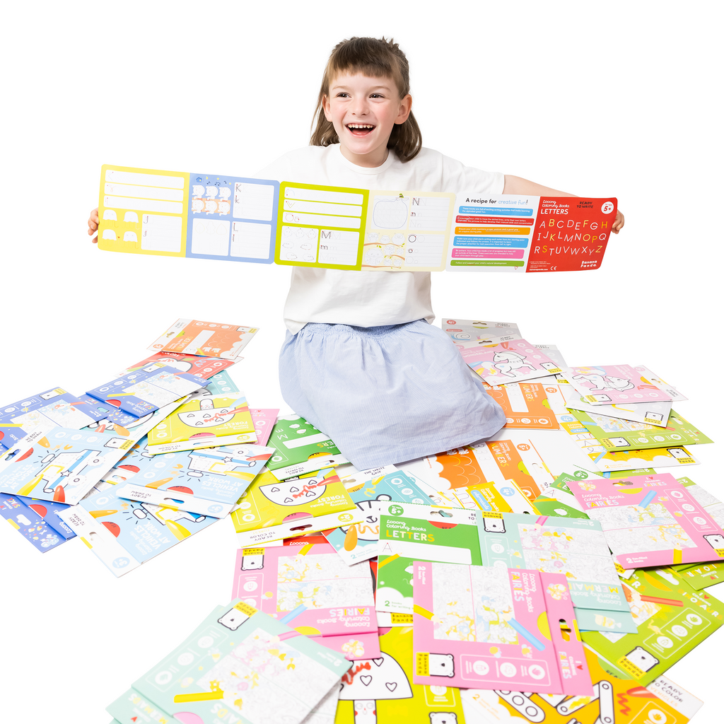 The Looong Coloring Book series includes 10 sets for ages 18 months to 5 years. Thanks to these books, children can gradually develop the motor skills they need later when learning to write. In the collection, you’ll also find 4 sets containing fun coloring books and activities related to topics that children love.